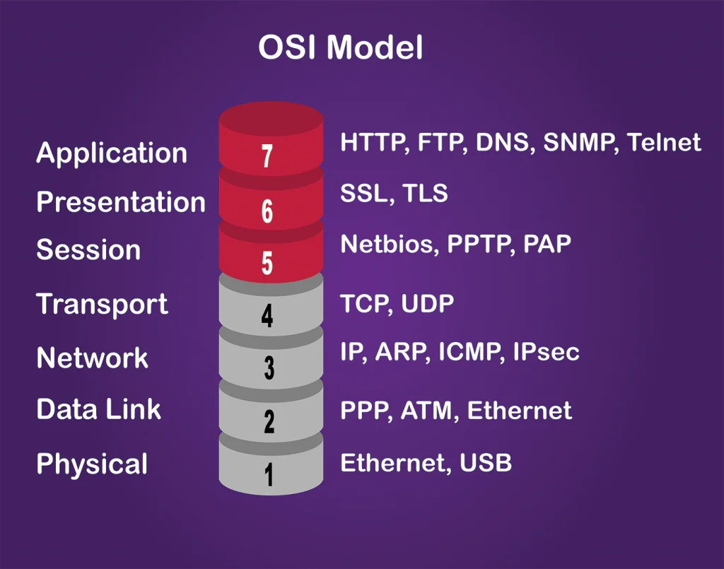 Each network connection has seven different layers in its website application firewall that can be targeted by DDOS. These layers are seen on the OSI Model shown below to describe this conceptual framework. However, only certain layers are targeted by volumetric, protocol, and application attacks.