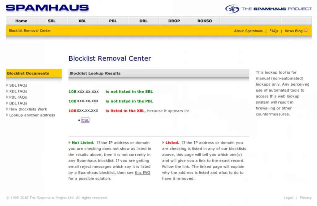 Spamhaus Blocklist Removal Center