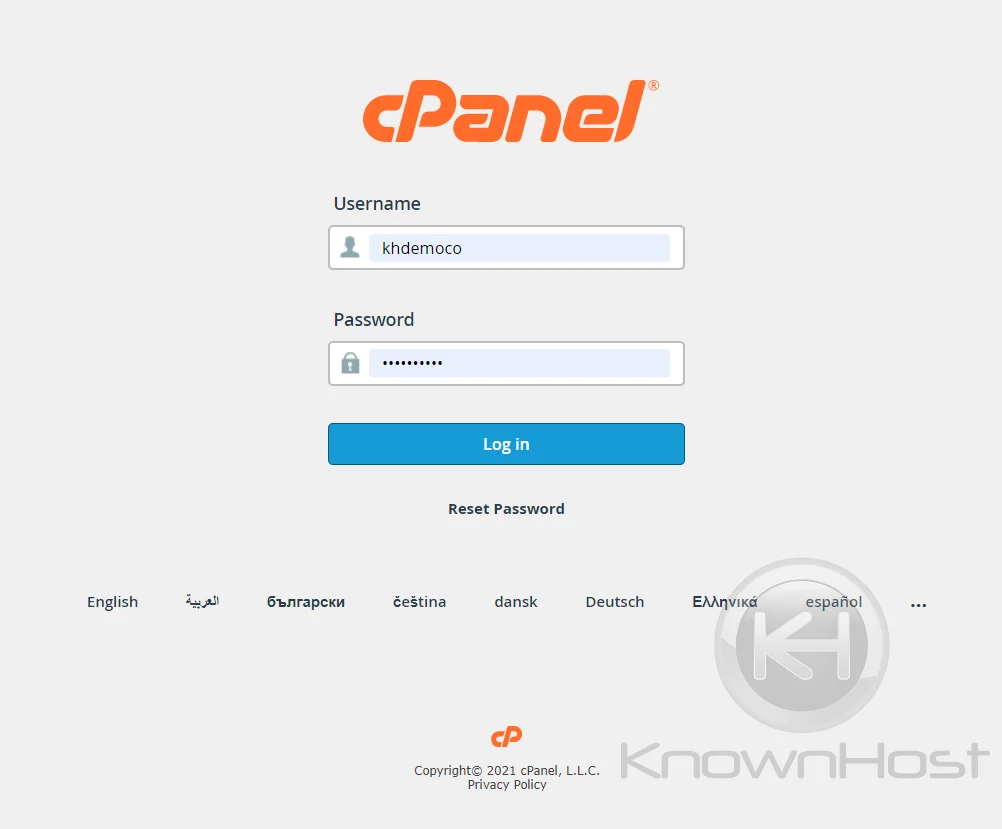 1. Log in to cPanel using Username & Password. i.e; (https://yourdomain.com:2083 or https://yourdomain.com/cpanel)