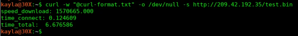 curl -w "@curl-format.txt" -o /dev/null -s http://209.42.192.35/test.binHere are the results of the location that is geographically furthest away from me: