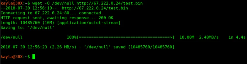 If you are familiar with the command line, there are several commands one can use to test how long it takes for files to be retrieved from these servers to your location. Two of these commands would be wget and curl. To use wget for a quick overview of the amount of total time required to retrieve the file, you would simply enter the command followed by the location of the file you want to download, like so: