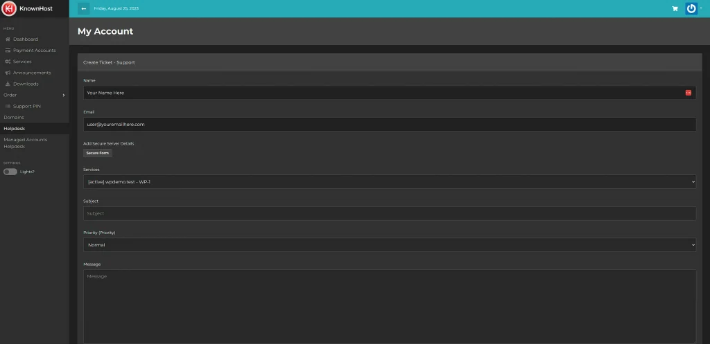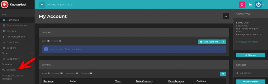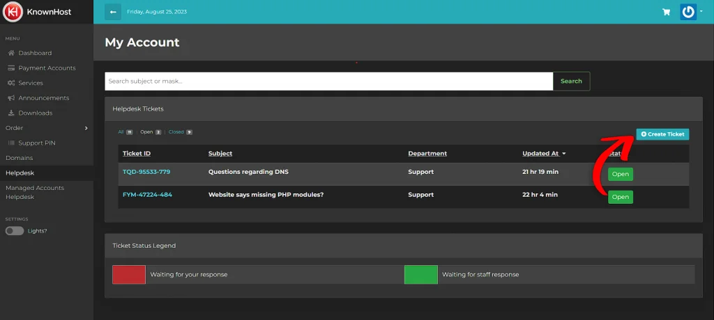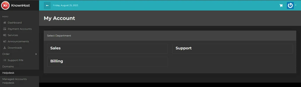 With the new system, the support portal is integrated into your https://my.site_46fda40b-4dd1-44eb-935a-50f9247e12e9 account. There’s no longer a need for two separate URLs or interfaces for KnownHost services – everything is now in one convenient location. This streamlines your experience, reducing confusion and eliminating the need for multiple logins.