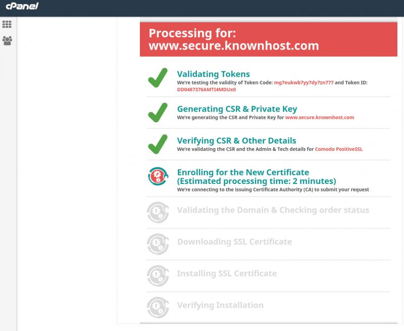 Tokens can be used within the cPanel interface by clicking on the AutoInstall SSL icon.