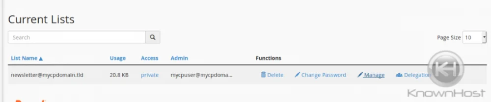 Scroll down to the section Current Lists and click Manage next to the list you need to create the filtering for: