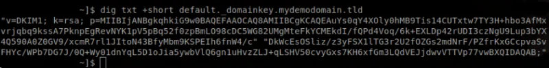 The existence of a DKIM record can be confirmed by checking the TXT record of the selector subdomain:
