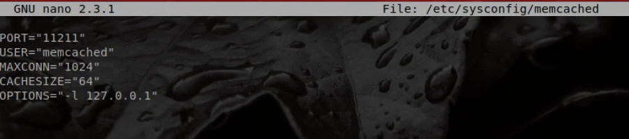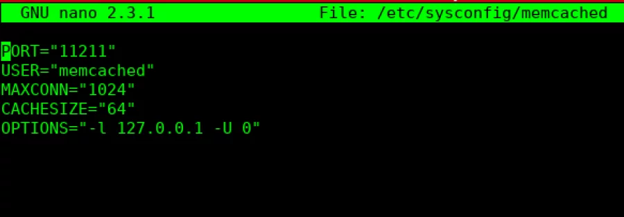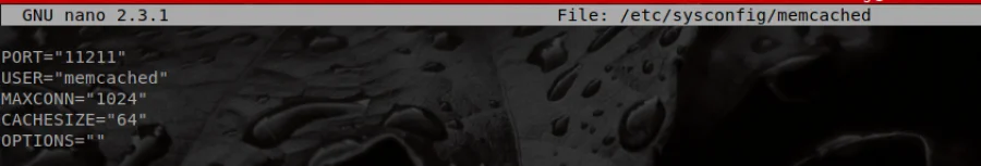 Now, to secure the installation, use nano to edit the file /etc/sysconfig/memcached: