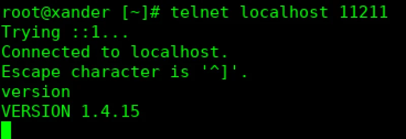 yum install memcachedNow, to check to see what version is installed by using telnet as shown in the screenshot below using the command “telnet localhost 11211”. Once connected, type ‘version’ and press Enter, and the Memcached version will be returned. If the version is less than 1.5.6, then you will need to secure your memcached installation following the steps below.