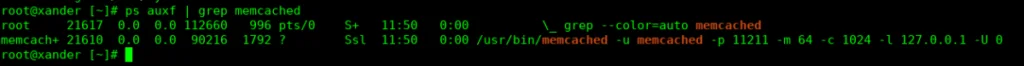 After restarting memcached with the command ‘service memcached restart’, I can see that my Memcached installation is secured because it is only listening on localhost and UDP is disabled: